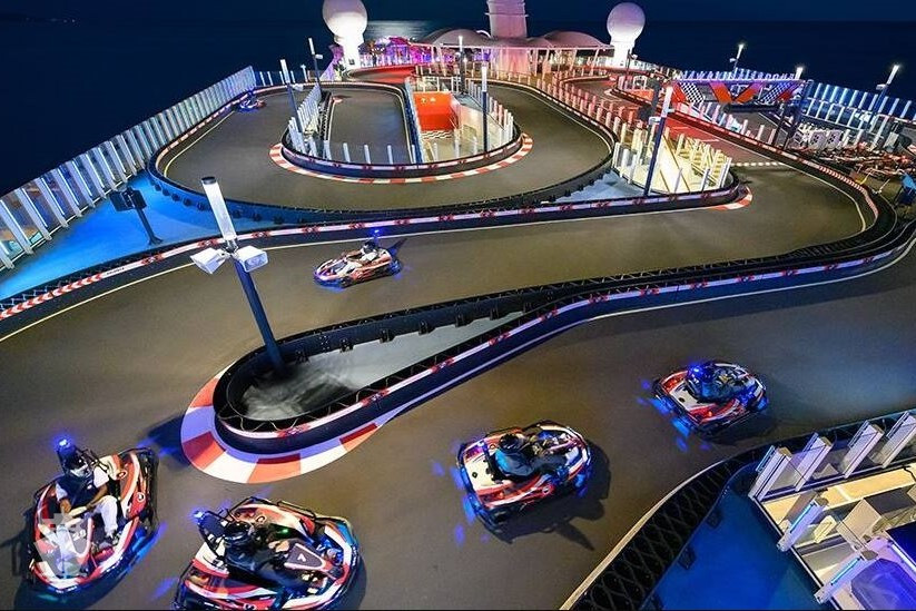 Ocean Loops - tobogan s dvojitou vývrtkou, vychádzajúci 3 m zboku lode, vo výške 48 m nad oceánom.