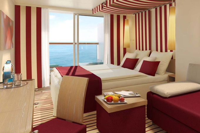 | VA - Kajuta s verandou Komfort PREMIUM od 20 m² + balkón od 6 m². Oddelené WC. 5,8,9. až 15. paluba. Max 4 osoby. Cenový model Premium. | 2 360 € 1 180 € za osobu | ||